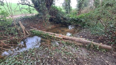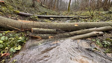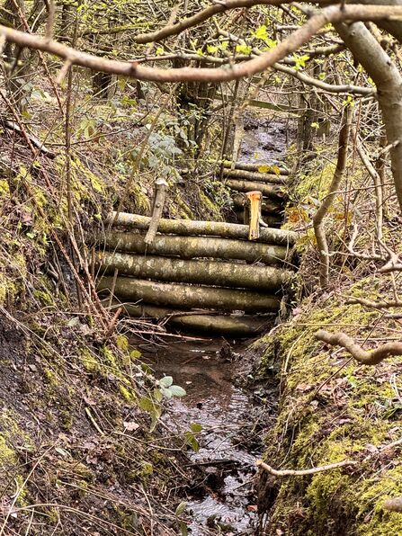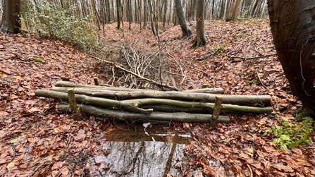 This was the first site completed as part of the project, with the works undertaken by Nottinghamshire Wildlife Trust's subsidiary EMEC Ecology. Leaky dams (locally sourced woody material in watercourses that can help reduce peak flows, mimicking the work of the Beaver – Nature’s engineers!) were created from site-won timber along Pudding Dyke in Old Meadow Wood and along the natural spring channel in Old Spring Wood. The aim is to slow the flow of water during heavy rainfall events.