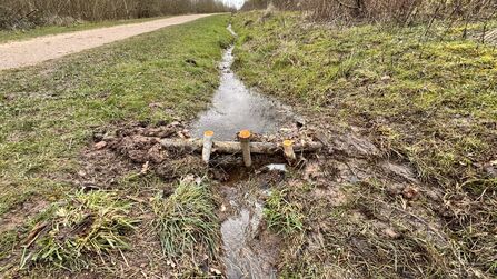 Leaky dams are being installed in the small drains which run off the site into Chesterfield Canal and eventually the River Ryton. Works began 4th March 2026 on leaky dams and surface flow deflectors. Pond and scrapes will be created towards end of summer and will create lots of good habitat.