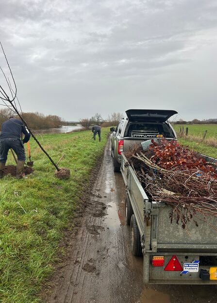 Planting trees next to rivers is hugely beneficial not only for wildlife by creating more habitat along river corridors, but also in mitigating the impacts of flooding and climate change. Trees along the river can help stabilise the banks with their roots, cast shade on the water helping prevent its temperature increasing, reduce pollutant run-off from the surrounding land and lock up more carbon. They can intercept falling rain with their canopy, allowing it to more slowly soak into the ground and their roots can soak up more water, preventing flash flooding. When the river does burst its banks, their trunks and deadwood help slow the flow of the water, minimising the potentially devastating effects of flooding.